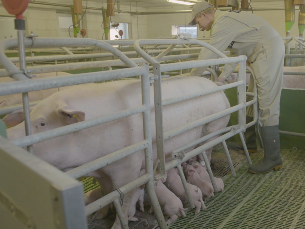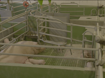 Die Sauen liegen mit dem Kopf zum Gang, was eine bessere Kontrolle ermöglicht und für mehr Ruhe im Stall sorgt.