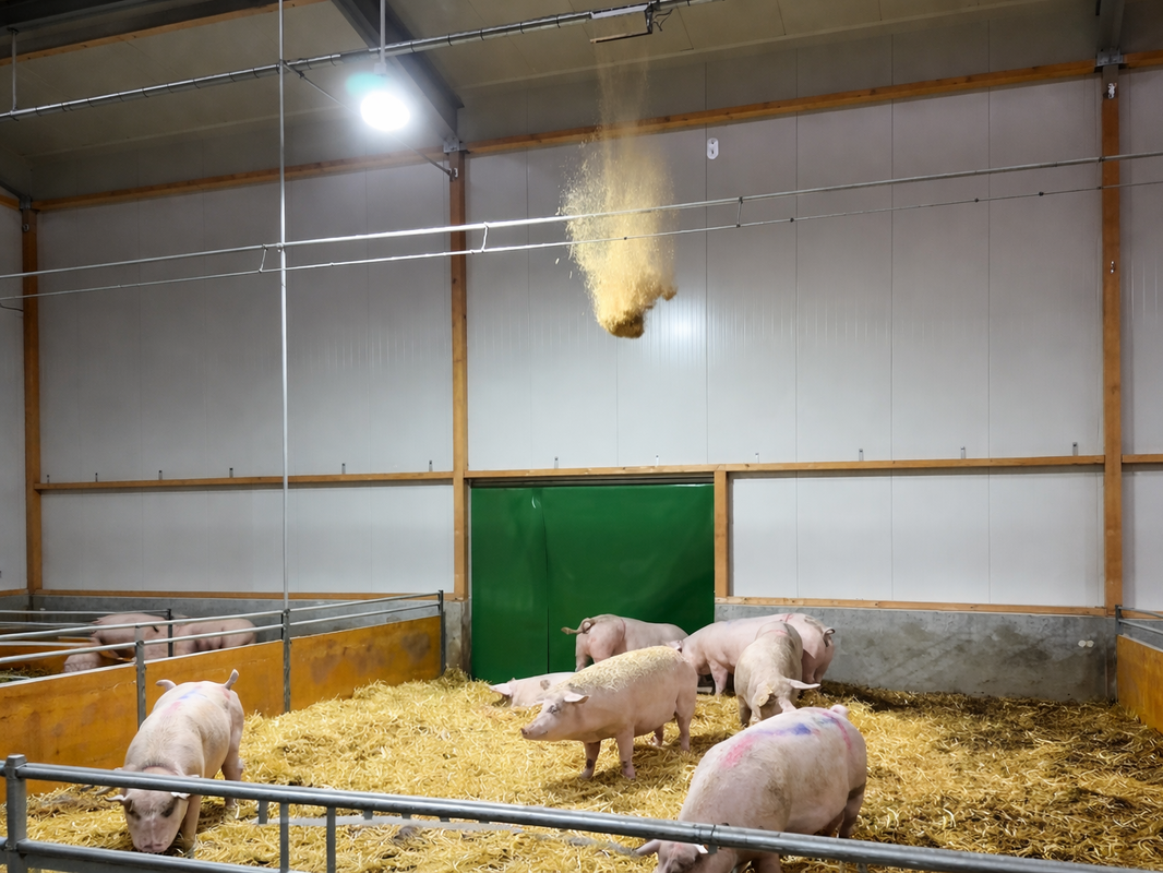 Mit dieser Flexibilität lassen sich Schweineställe effizient, bedarfsgerecht und tiergerecht einstreuen – bei optimaler Anpassung an die jeweiligen Betriebsbedingungen.