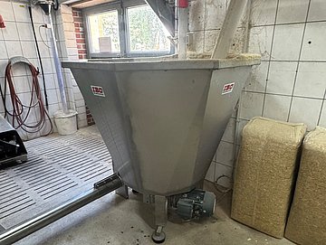 - Die verbauten Trockenfutterautomaten begrenzen den CCM-Anteil auf ca. 25 % – alles aus hochwertigem Edelstahl gefertigt. Die gesamte Anlage läuft besonders leise und sauber, die Futteraufnahme ist digital einsehbar über PC am Chargenmischer oder Fernzugriff